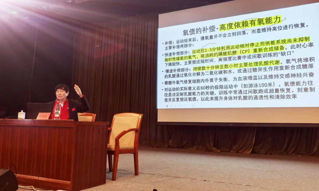 沈金康教练针对青少年游泳运动员改善有氧能力和提高氧的利用率策略进行了详细的讲解,就青少年有氧训练的重要性、青少年生理特点与有氧训练适应性、游泳训练计划的制定方法和监控方法经验进行了分享,并与当天前来培训的教练员进行交流和答疑,教练员们以此为话题与沈教练进行了经验分享,场面热烈。