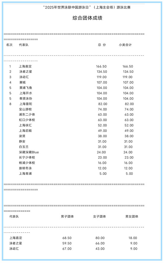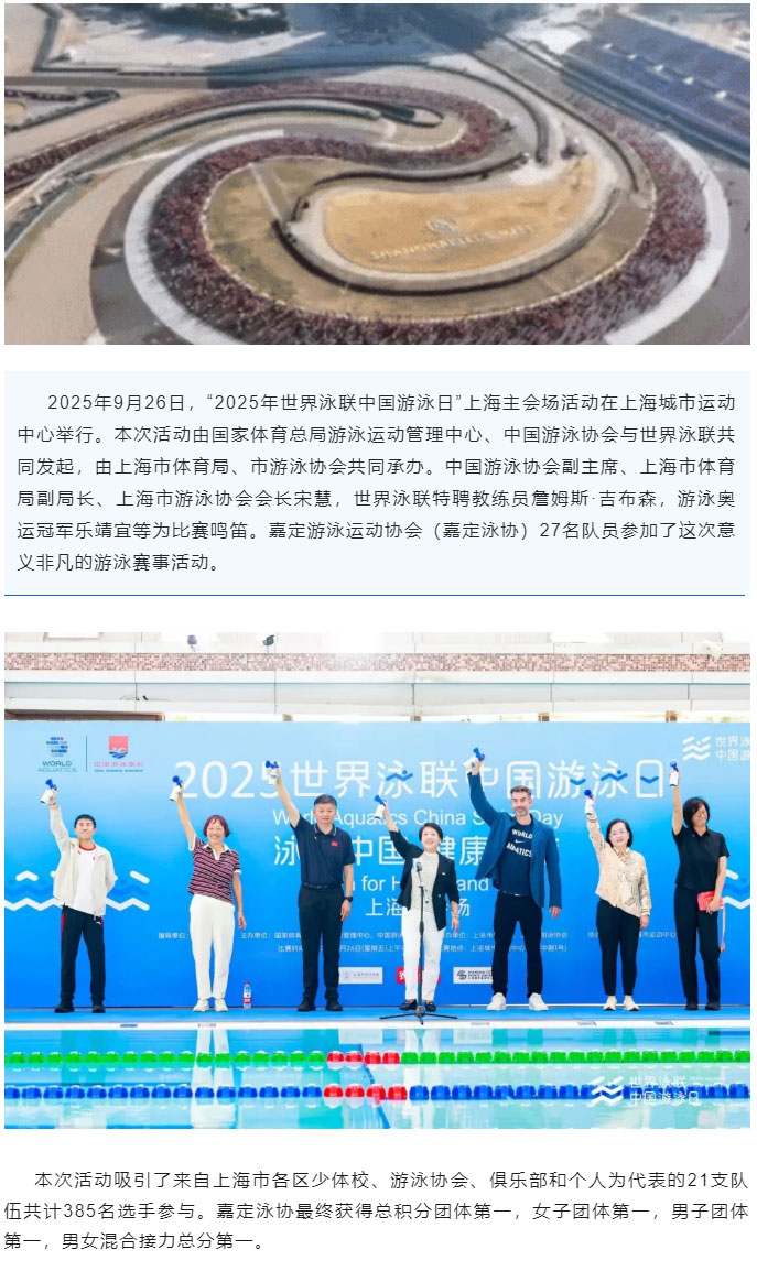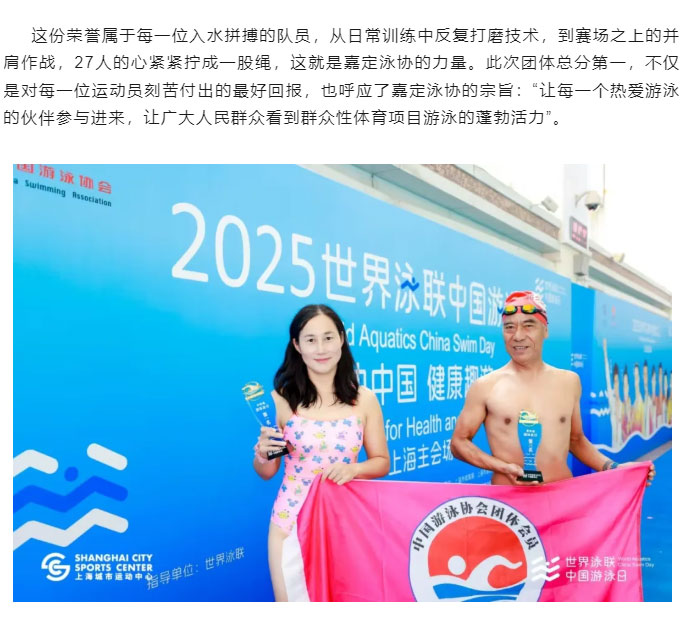 再创佳绩:嘉定泳协夺冠2025年世界泳联中国游泳日(上海主会场)赛事活动!