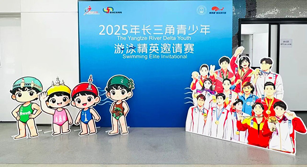 为了提升比赛的趣味性和青少年的参与感,主办方特别设置了四个赛事吉祥物,将三省一市的地标景点融入卡通形象,并展示了长三角地区诞生的13名游泳奥运冠军的卡通版彩绘,让青少年选手们在比赛中感受到榜样的力量。同时,赛事积极响应文旅商体展联动,在体育馆二楼设置了游泳集市,提供乳制品、饮用水和游泳装备等消费新场景,为参赛选手和观众带来了全新的体验。
